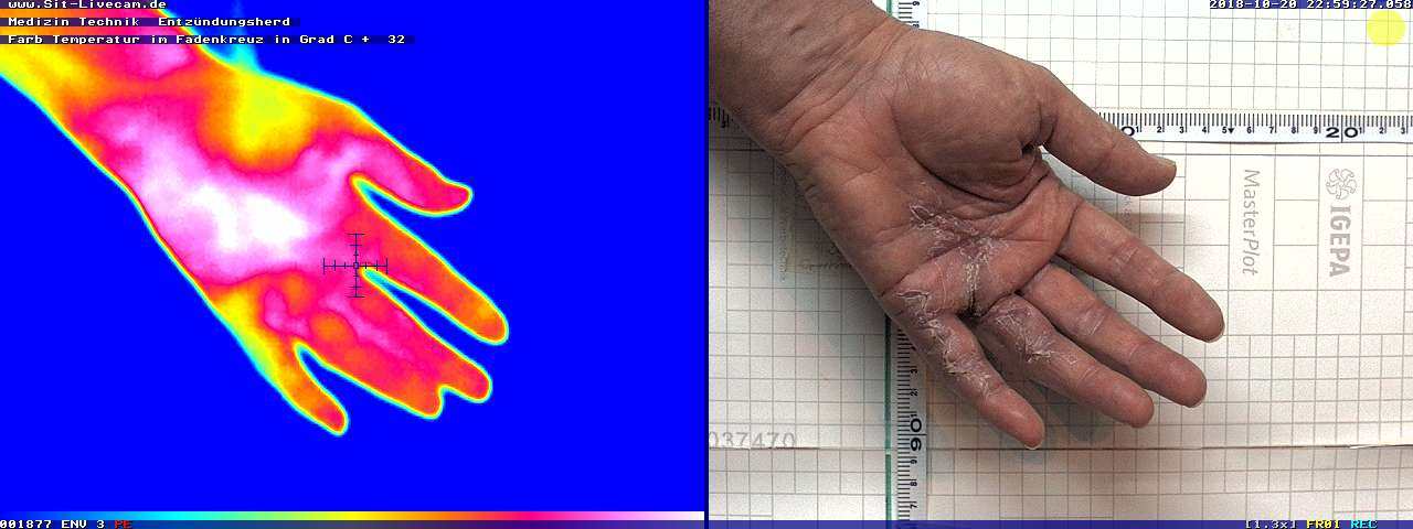 - In der Handfläche besteht eine deutlich erhöhte Temperatur