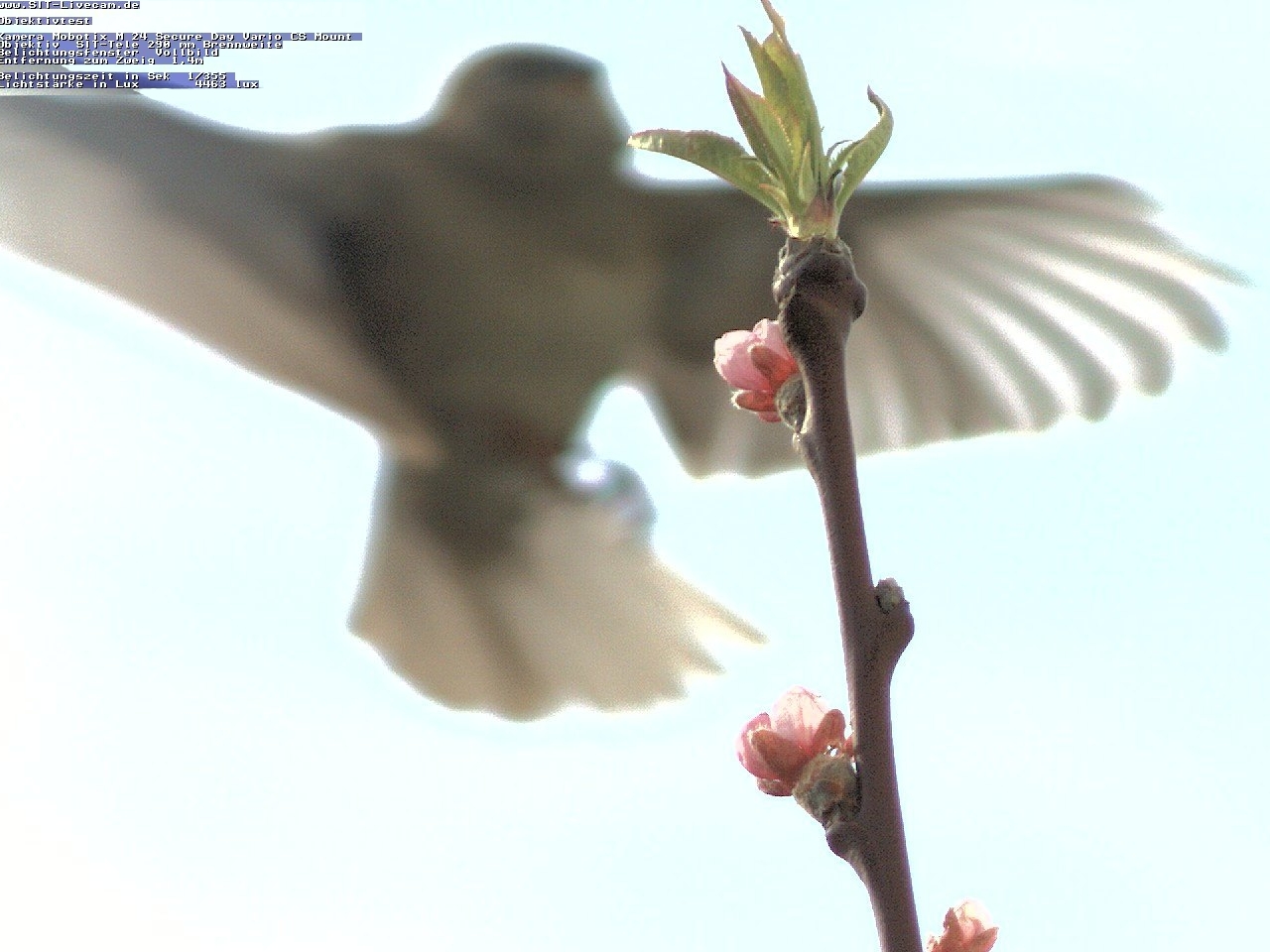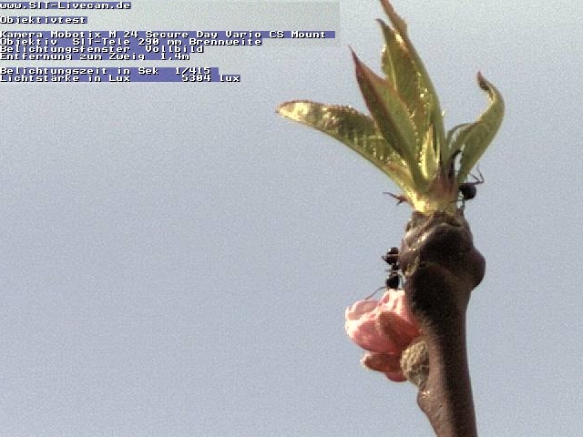 | Aufblühen eines Zweiges aus Live Aufnahmen Tele Objektiv 270 mm + Mobotix M 24 Vario Sit | ||||